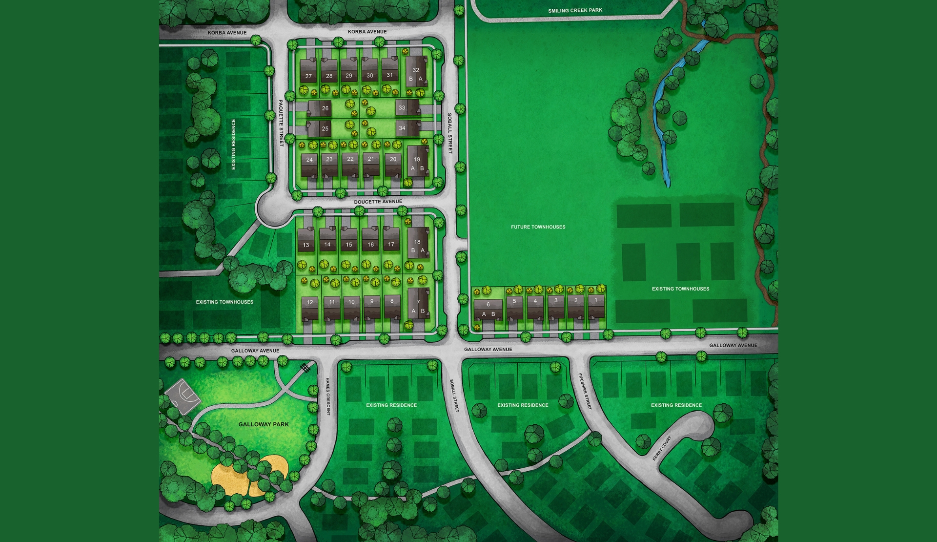 Situated near Galloway Park and a short walk from Smiling Creek Elementary School. The location offers convenience and the perfect balance of beauty and tranquility. From peaceful morning strolls through nature to evenings spent watching the sun set over the park.