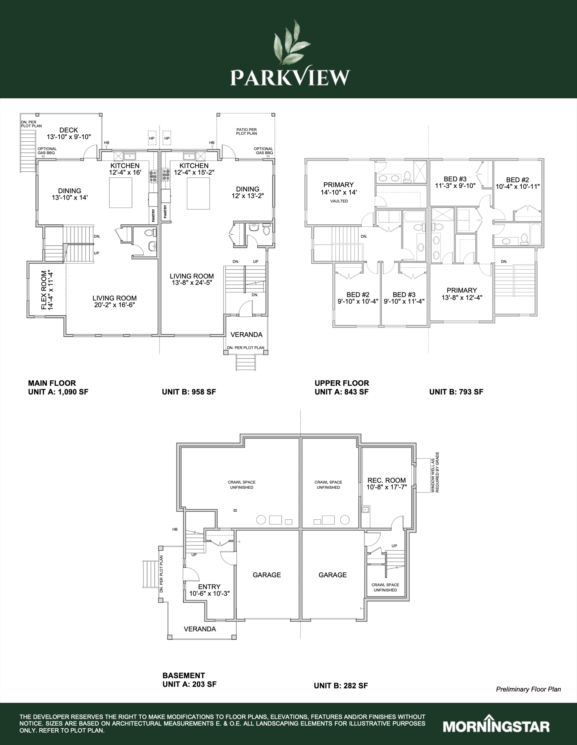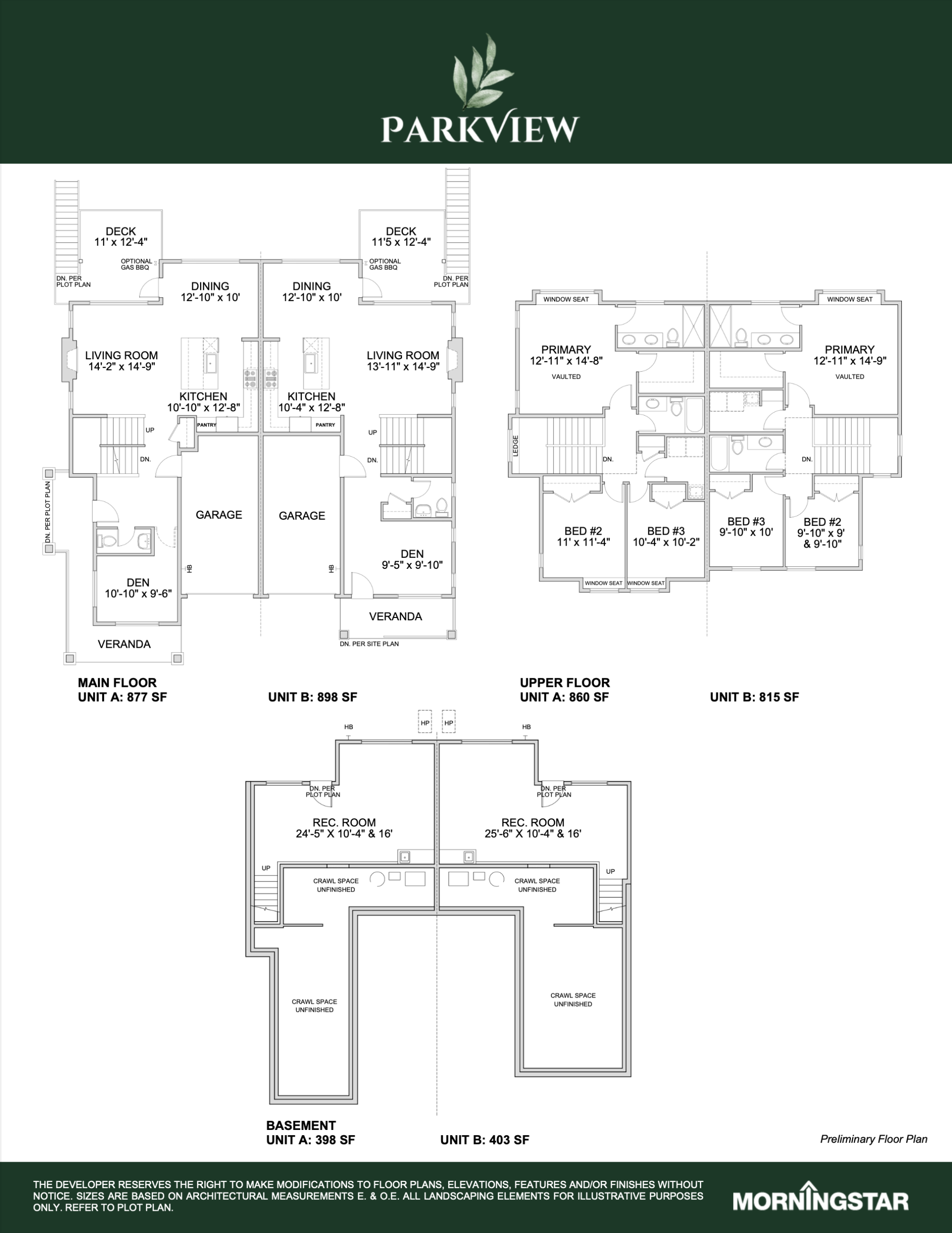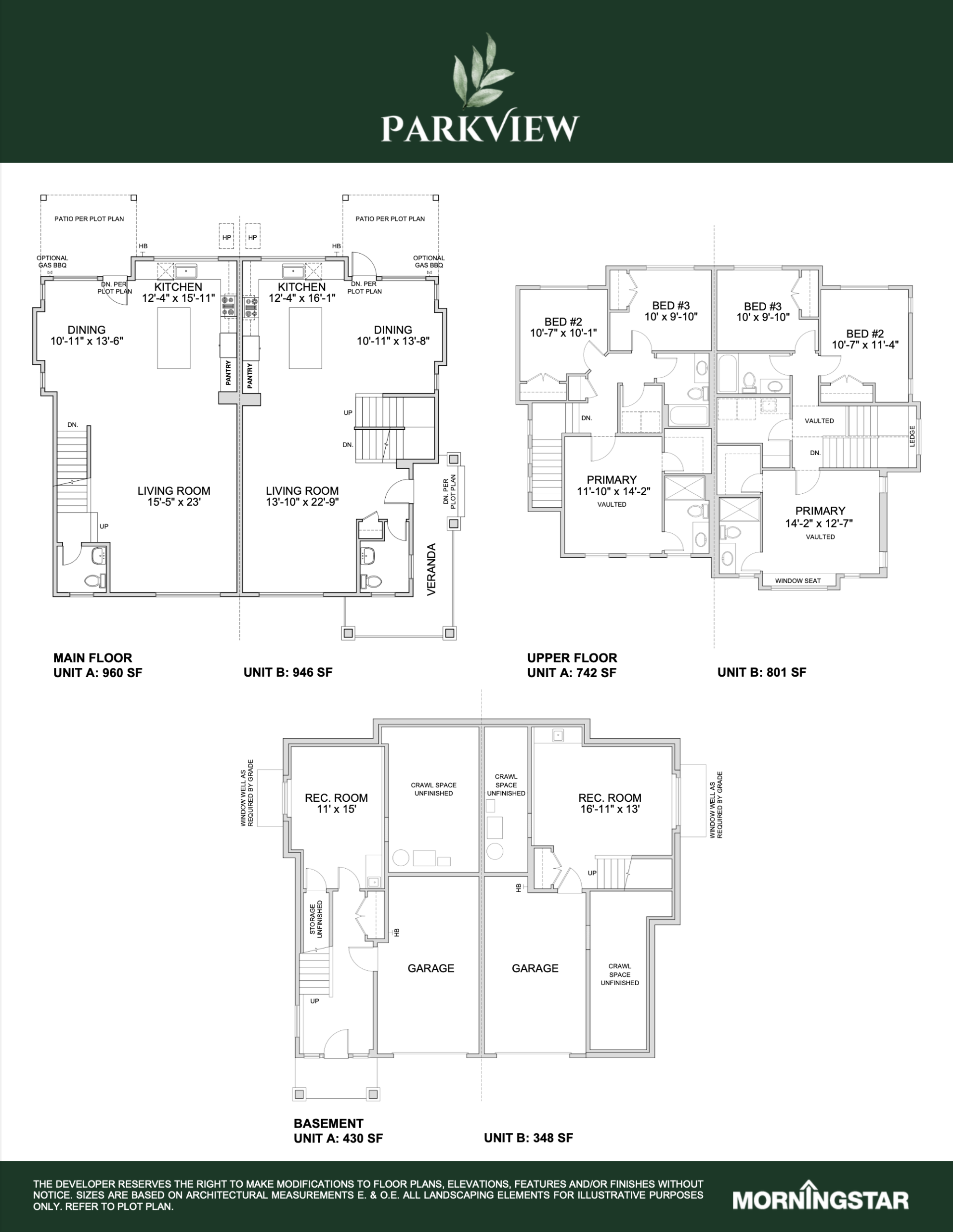 BURKE MOUNTAIN PRESALE HOMES AND DUPLEXES - PARKVIEW FLOOR PLANS